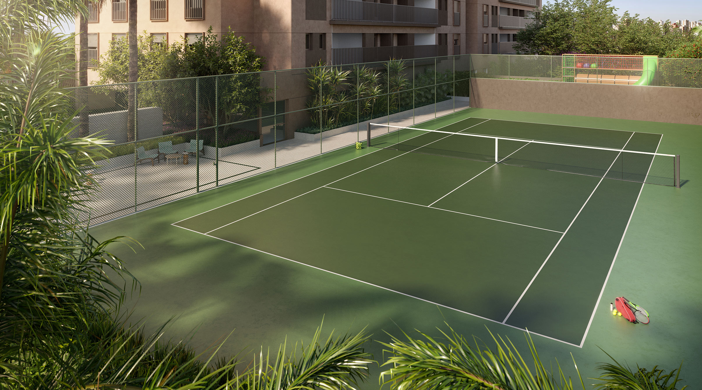 Aulas e atividades como academia, recreação, aulas de tênis (iniciante, intermediários, avançado e infantil).
